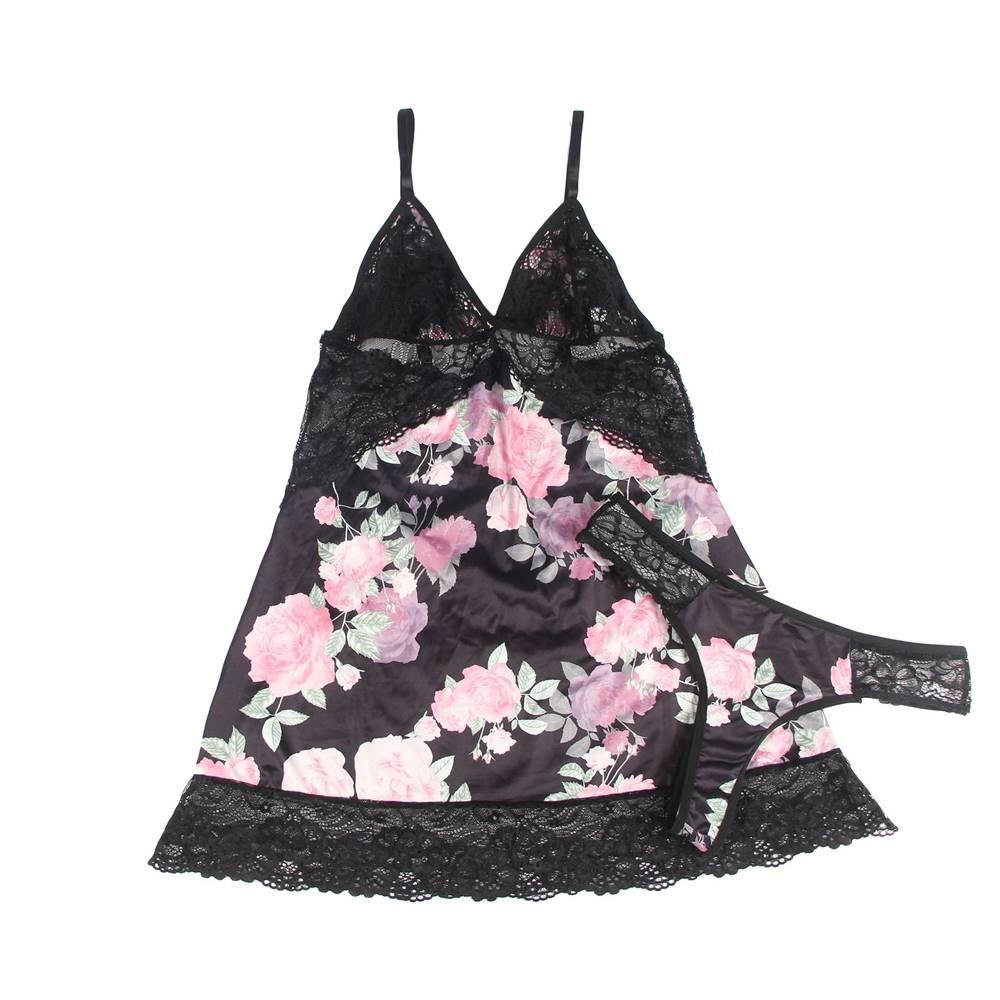 Νυχτικό με φλόρα τύπωμα και λεπτομέρειες από ελαστική δαντέλα.
